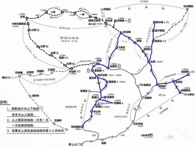(此图为黄山导游图,让大家了解黄山景区。仅为参考,准确游览线路按照我们所列的计划行走) 黄山:五岳归来不看山,黄山归来不看岳 黄山雄踞风景秀丽的安徽南部,是我国最著名的山岳风景区之一。黄山集名山之长:泰山之雄伟,华山之险峻,衡山之烟云,庐山之飞瀑,雁荡山之巧石,峨眉山之清凉。 明代旅行家、地理学家, 徐霞客两游黄山,赞叹说:“登黄山天下无山,观止矣!”更有“天下第一奇山”之称。可以说无峰不石,无石 不松,无松不奇,并以 奇松、怪石、云海、温泉 黄山四绝著称于世。其二湖,三瀑,十六泉,二十四溪相映争辉。春、夏、秋、冬四季景色各异 宏村:中国画里的乡村 整个村子呈“牛”型结构布局,更是被誉为当今世界历史文化遗产的一大奇迹。 宏村位于黄山的西南麓,始建于南宋绍兴年间距今约有900年的历史。整个村落布局似牛形,故被人们称为“牛形村”。全村以高昂挺拔的雷岗山为“牛头”,满山青翠苍郁的古树是牛的“头角”,村内鳞次栉比的建筑群是“牛身”,碧波荡漾的塘湖为“牛胃”和“牛肚”,穿堂绕屋,九曲十弯的人工水圳是“牛肠”,村边的四座木桥为“牛腿”,宏村就似一头卧牛处于青山环绕,稻田连绵的山冈之中。