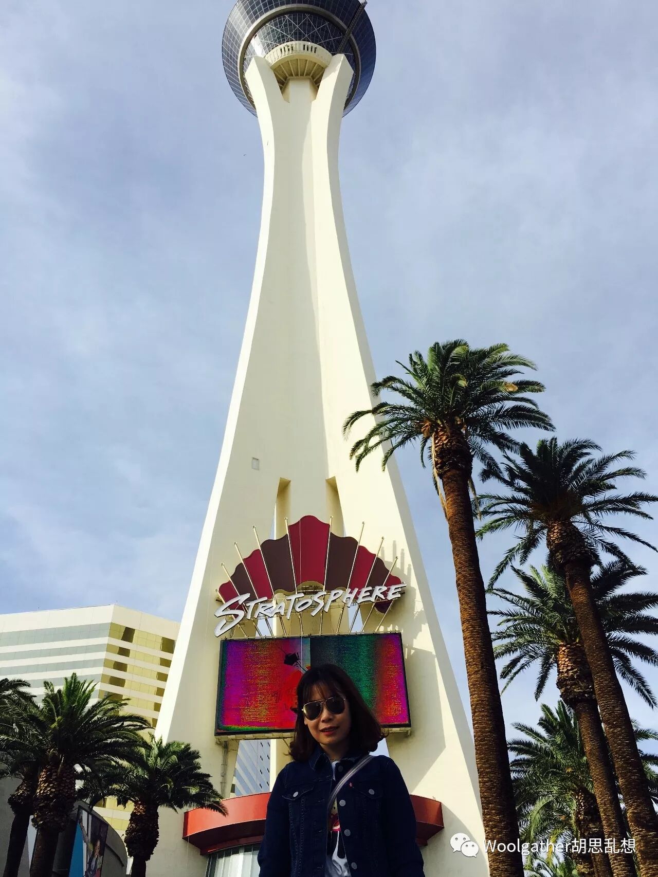大概到了下午两三点,我们到了拉斯维加斯。拉斯维加斯是以赌博业为中心的城市,所以道路两旁都是各式各样的赌场酒店。我们住的是当地最高建筑的酒店,Stratosphere Tower(云霄塔),据说有350米高。