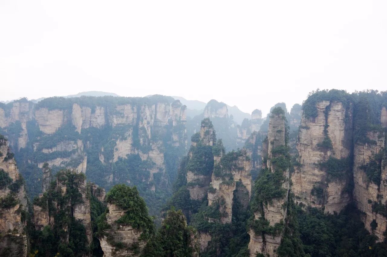 天子山处于武陵源腹地,地势高出四周。置身天子山主峰,举目远眺,视野辽阔,透视线长,层次丰富,气象万千,方圆百里景观尽收眼底。