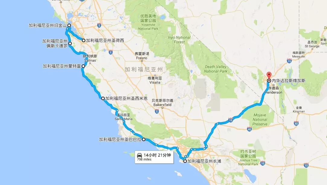 圣何塞—旧金山—圣西蒙—洛杉矶—邮轮(卡特琳娜岛—恩森纳达岛)—拉斯维加斯