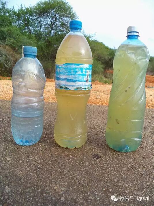 旅途中的用水主要是向当地人讨,到了非洲以后因为油炉总被劣质汽油堵住,就没有再烧水了,总是当地人喝什么我就喝什么。虽然非洲人的水经常只是从家附近的水坑中舀出来的,沉淀几天都是茶色的,喝在嘴里是温咸的。不同地方的水味道也会差得很多,很难适应。也因此胃肠炎是家常便饭,得怪病的时候也不会觉得太意外。一路上只有为了获取瓶子的时候才买过几瓶水。总共RMB50吧。