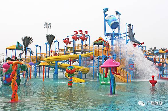 在广德新城区无量溪滨河公园内,远远就能看到五颜六色涂装的大型游乐设施。驱车靠近发现,这是一个海洋主题的欢乐水世界!