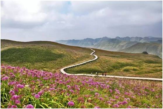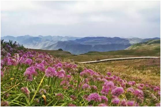 沿着韭菜坪十八弯的山路,一路驰骋到贵州最高处,看山雾缭绕,芳草遍野,鲜花红艳。
