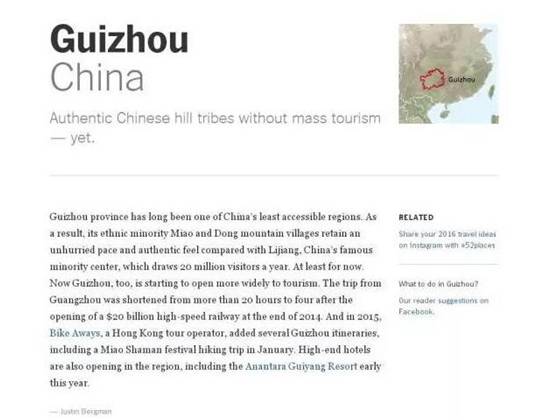 贵州是2016全球最值得一去再去旅游地