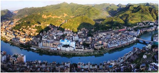 舞阳河畔,四周皆山,蜿蜒河水,“S”形穿城而过