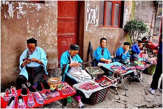 街头巷尾,妇女们都穿着“凤阳汉装”,宝蓝色的宽袖大襟衣