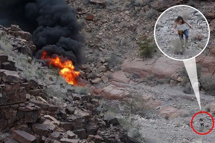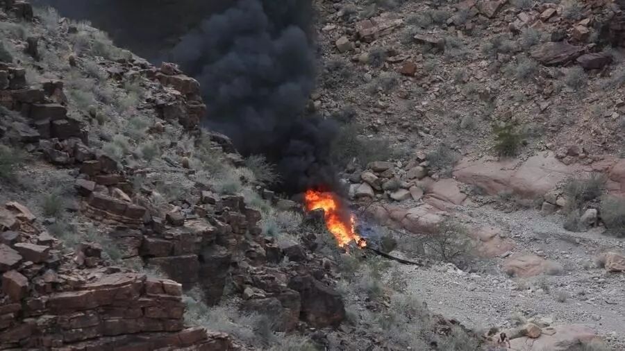 目击者描述了这架观光飞机在峡谷内大约600英尺处被火焰吞没后的混乱场面。