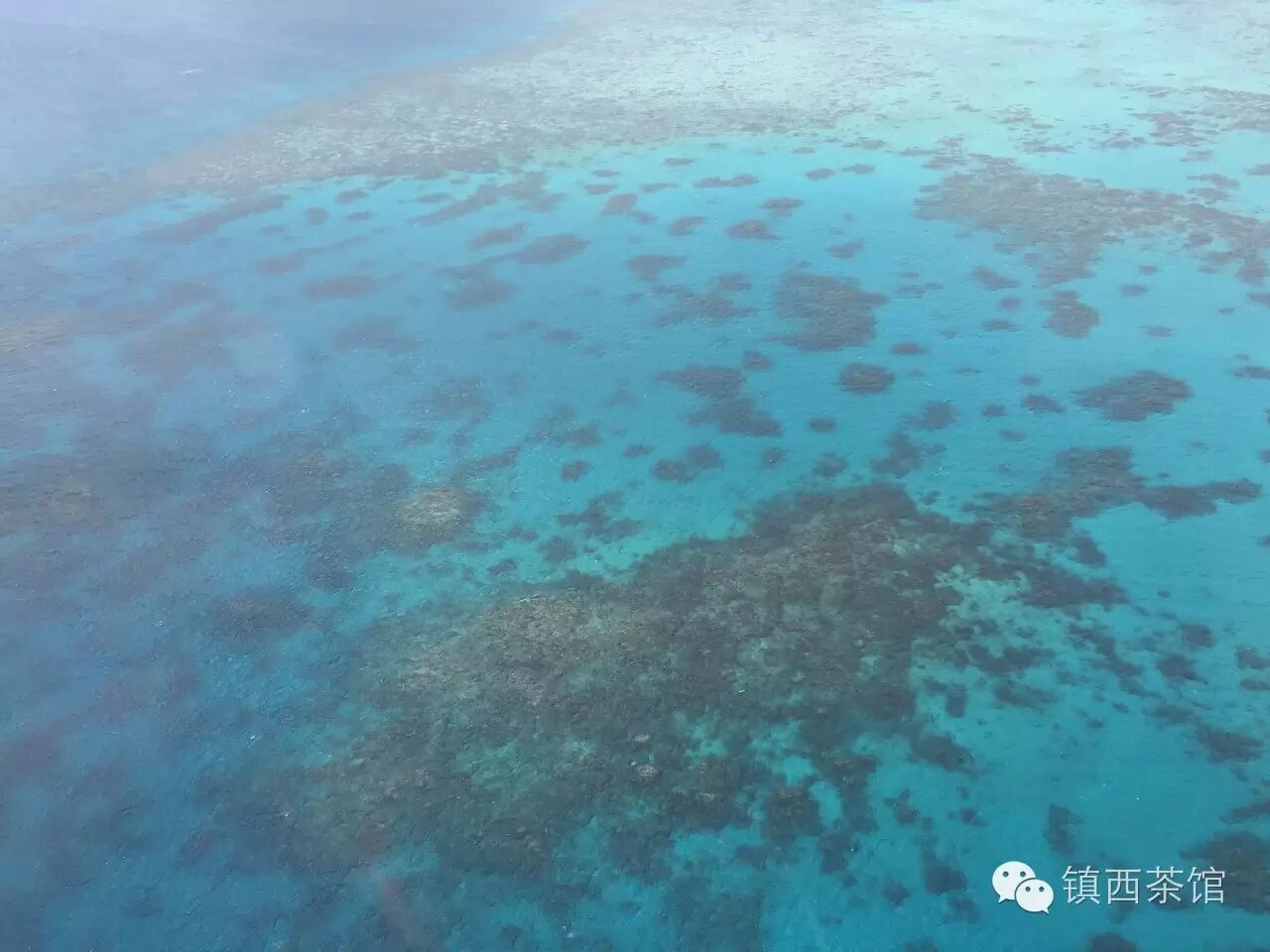 第二天,我们先乘车来到著名的道格拉斯港,然后乘坐直升机前往著名景点大堡礁。第一次坐直升机,完全没有我想象的颠簸,而是非常平稳,十分舒适,感觉非常好。从空中俯瞰大海,森林、山峦以及原野上的别墅,都像是沙盘上的模型。大海一望无涯,完全与天空合二为一。浅蓝色的海面上,遍布许多一片片不规则的深绿色图形——那就是珊瑚礁。因为许多珊瑚礁,此刻眼中的大海宛如一张巨大的地图。
