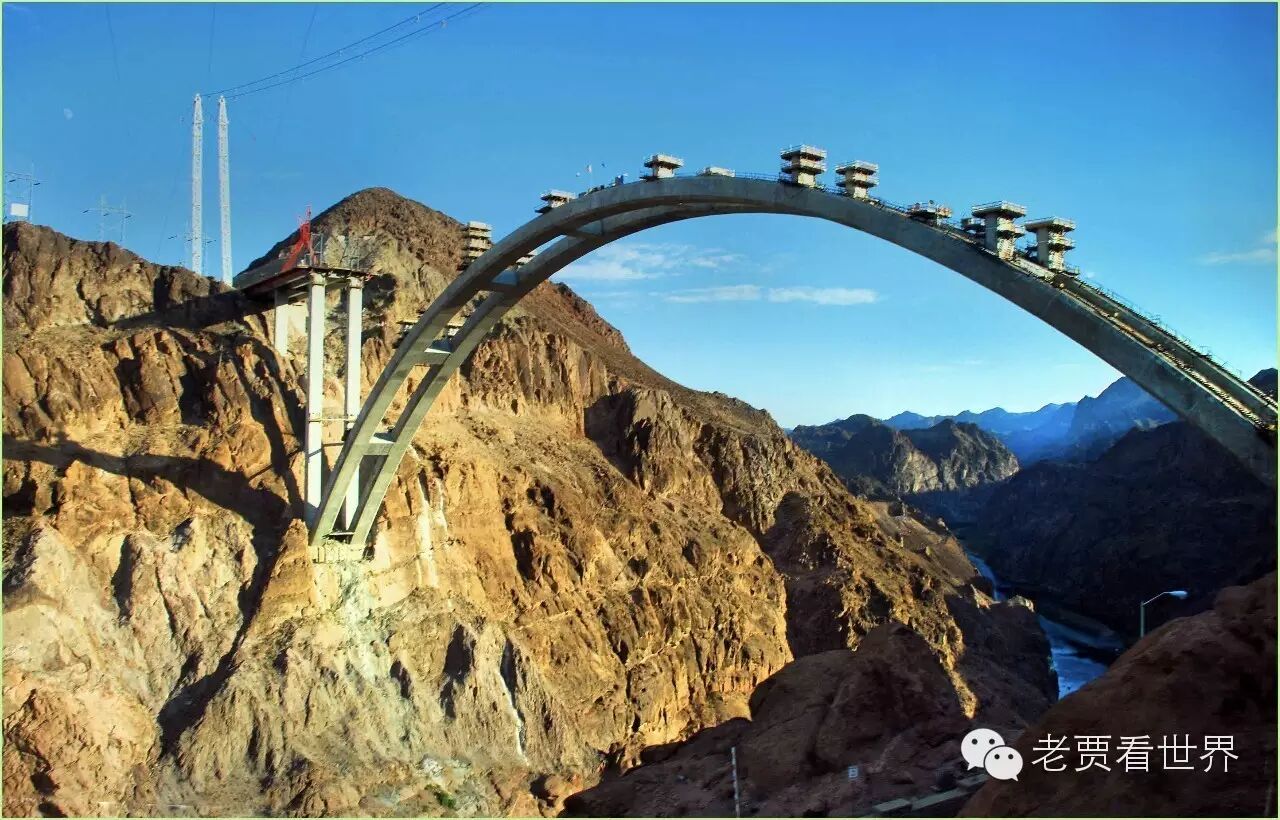 建造中的胡佛大桥 大桥正式全称为迈克·奥卡拉汉-帕特·蒂尔曼纪念大桥。2010年10月建成通车。
