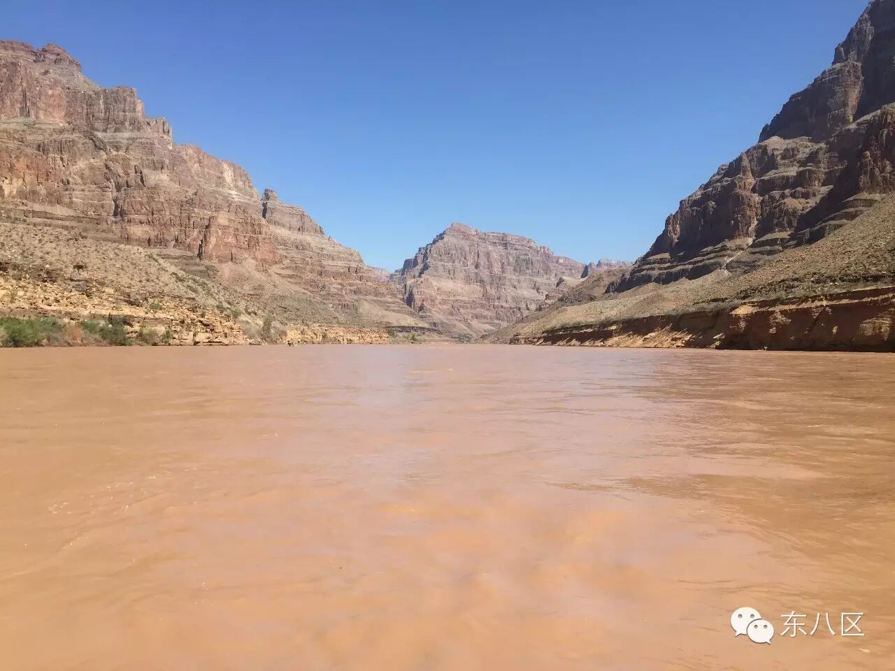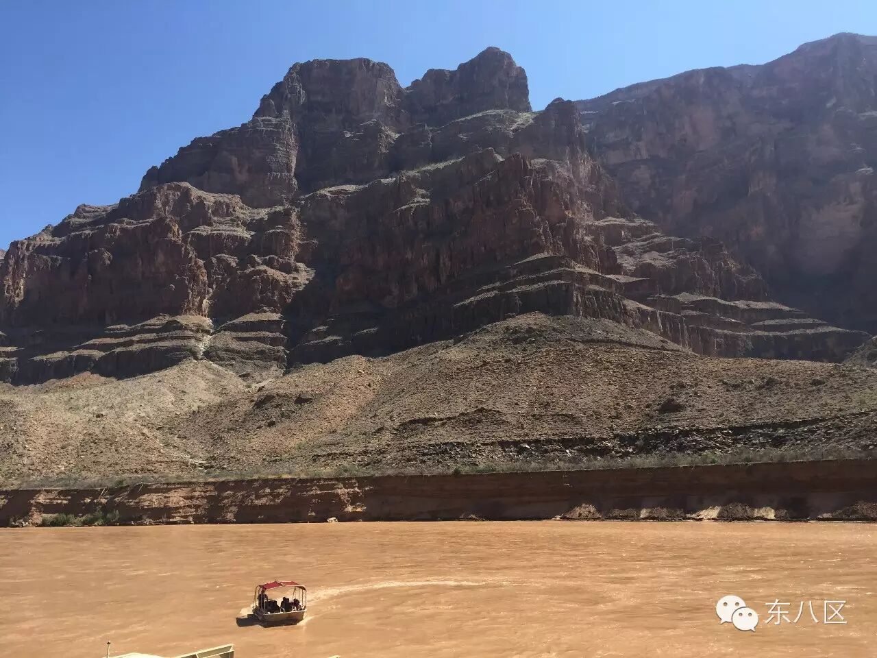 直升机安抵谷底,东少脚软地步行至布满乱石与仙人掌夹杂的河岸边,登上游船畅游科罗拉多河。“科罗拉多”,在西班牙语中,意为“红河”,这是由于河中夹带大量泥沙,河水常显红褐色,故名。