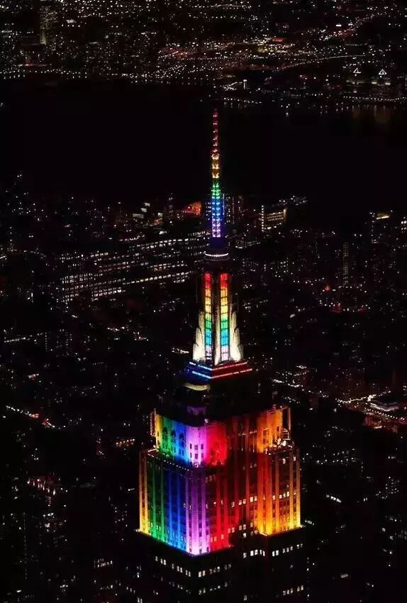 在2015年的纽约Pride Week上,帝国大厦在纽约空中点亮彩灯,与NYC Pride组织一同向LGBTQ社群致敬。耀眼彩灯为城市夜空架起一道彩虹。