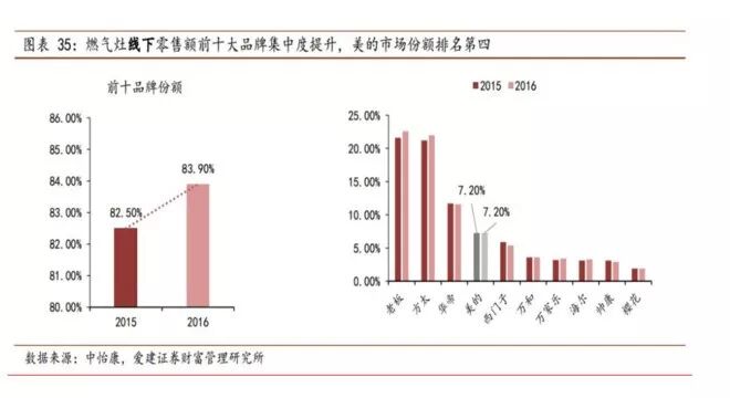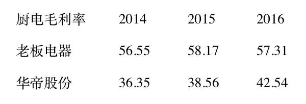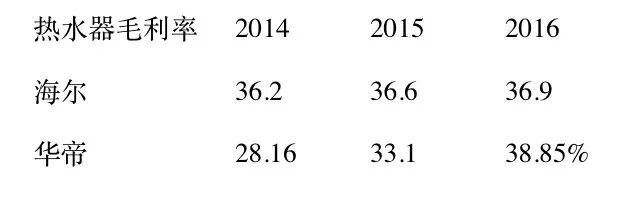 由于美的没有单独列出其热水器毛利率数据,因此仅比较华帝与海尔情况,市场占有率海尔在国内品牌中市场占有率第一,但是其毛利率已经被华帝超越,领导者地位并未体现。