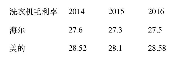 从上面的数据可以看出,虽然美的的冰箱业务市场份额与美的的差距不断缩小,但是毛利率方面差距并没有缩小,海尔的领导者地位暂时还没有受到冲击。