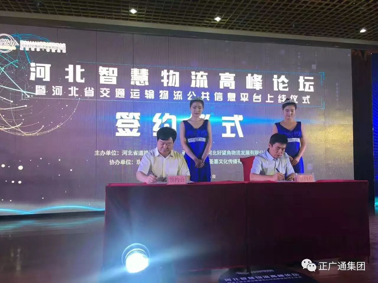 7月29日,河北智慧物流高峰论坛暨河北省交通运输物流公共信息平台上线仪式在河北邢台举行,会议以“智慧物流——产业发展新功能”为主题,解读国家有关物流政策,探讨我国物流业发展趋势,分析新技术在物流企业的应用,总结无车承运人试点企业的成功经验,共谋企业间的合作发展。邢台市副市长张志峰、河北省道路运输管理局局长王孟章、中国物流与采购联合会会长何黎明、交通运输部运输服务司货运与物流管理处处长余兴源出席会议并致辞。正广通集团董事长杨文华、副总裁王思琪、总裁助理丁兵受邀并出席会议。会上,正广通集团董事长杨文华与好望角的董事长吴清杰签订合作协议,借助“河北省交通运输物流公共信息平台”,共同构建河北省互联互通、线上线下相互融合的智慧物流服务体系。