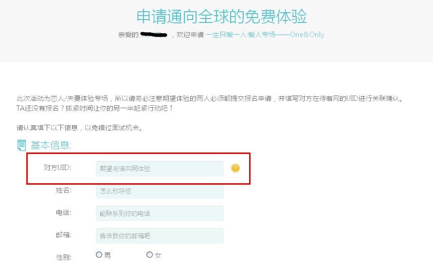 然后在报名时,爱人双方各自填写对方UID,并完善报名资料即可。