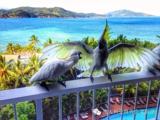 更值得一提的是,汉密尔顿岛上生活着多种美丽的鹦鹉,当你置身于酒店时,会发现它们或伴人远飞、或与人同行,人、鸟与自然和谐相处的动人画面。