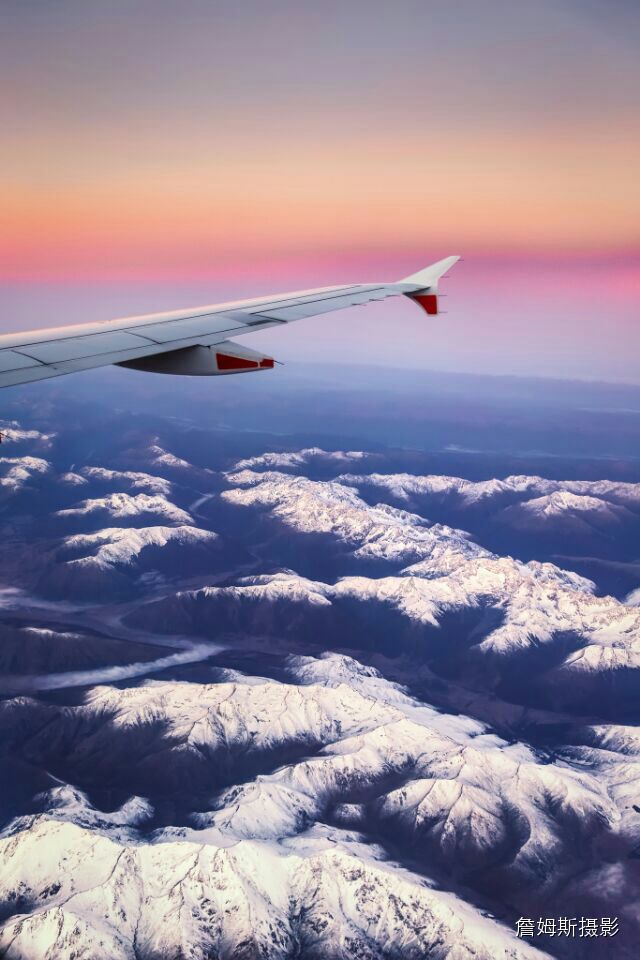 飞机上看新西兰,皑皑白雪覆盖山头。