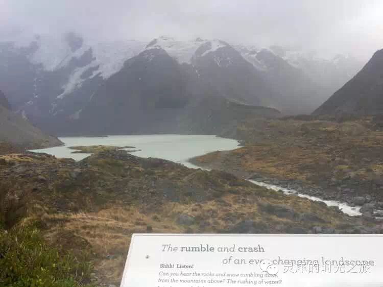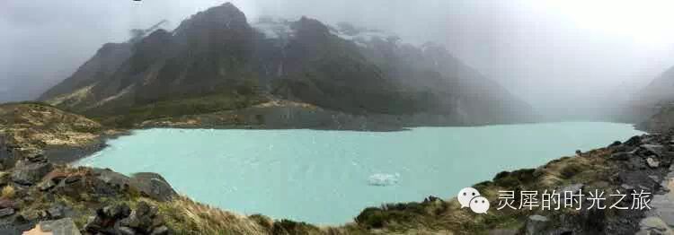 库克山国家公园的胡克步道,团队在持续的狂风斜雨中徒步5小时,大部分人到达终点湖看到了雪山上冲下来的浮冰。