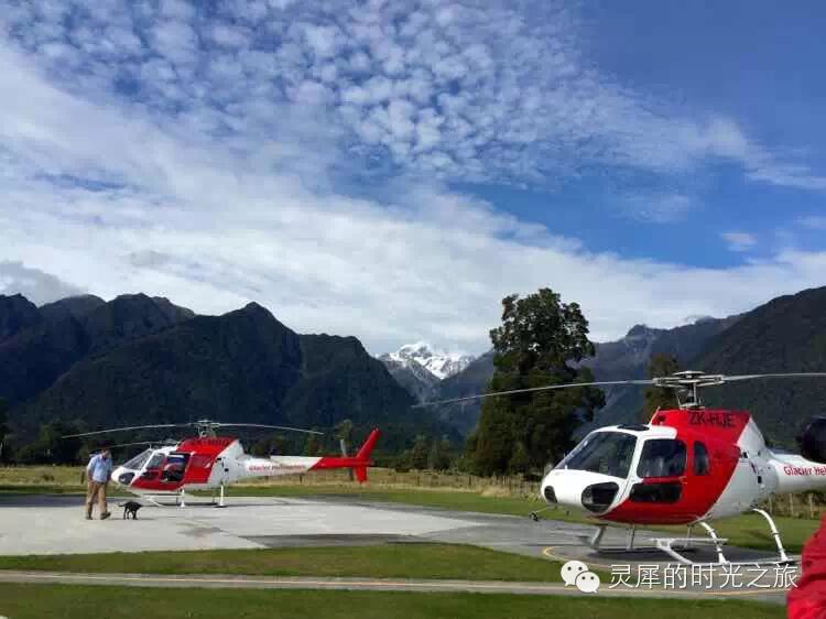 福克斯冰川镇,我们坐直升机来到冰川之上,在海拨1700多米的地方轻松地体验了一把探险家的感觉,欣赏冰洞深浅不一的蓝。