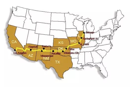 被称作母亲之路的美国66号公路全程3939公里,东起芝加哥,一路向西直抵圣莫妮卡。如果你想收集美国各州的纪念品,我想66号公路也是个不错的选择,从芝加哥所属的伊利诺州开始,依次会穿过密苏里州、堪萨斯州、奥克拉荷马州、德克萨斯州、新墨西哥州、亚利桑那州以及加利福尼亚州.
