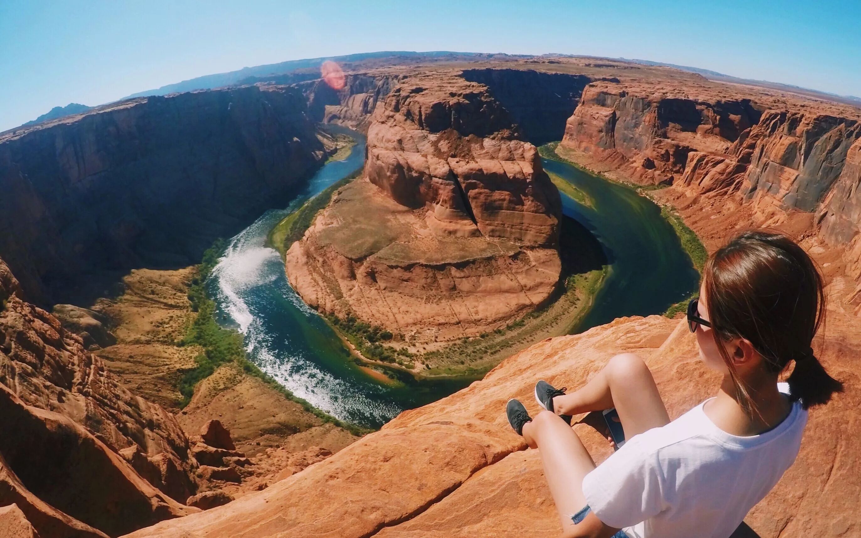 随后前往科罗拉多河的大拐弯【马蹄湾】,她被国家地理杂志评选为十大摄影地点之一,1000 英 尺直下的悬崖下,绿色的科罗拉多河围绕着红色的马蹄状岩石,蜿蜒流淌出 270 度的转角,极具震撼。