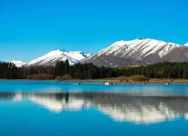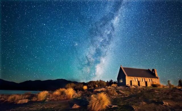 漫步在蒂卡波湖湖边,湖对岸就是雄伟的南阿尔卑斯山脉,教堂静静屹立在湖边,沉稳而简朴。透过教堂的窗户,青翠的小草、紫色的鲁冰花、湛蓝的湖水和皑皑的雪山,随便按下快门都是明信片里的样子。蒂卡波地区是“国际黑夜夜空保护区”,拥有全世界最美的星空。夜晚,只要一抬头就可看到绚丽的璀璨银河。