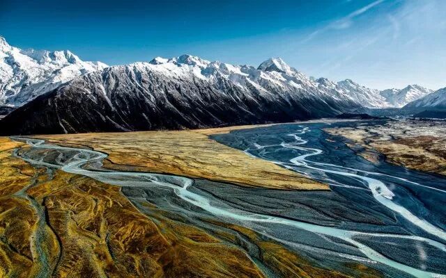 库克山国家公园有19座超过3000米的高山,主峰库克山海拔3724米,是整个新西兰的最高峰,公园内超过三分一的地区常年冰雪覆盖,已被列为世界遗产区。