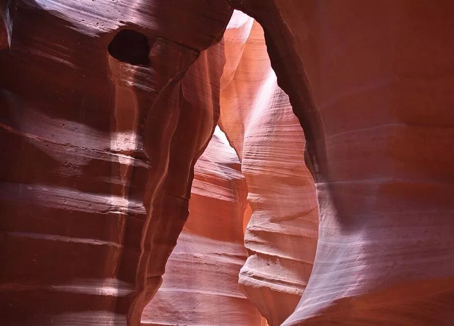 之后会抵达全世界最奇特的狭缝洞穴,世界十大摄影地点之一的下羚羊彩穴,跟随纳瓦霍印第安嚮导进入彩穴。彩穴岩壁融合了千百年来风和洪流的侵蚀,呈完美的波浪形,是大自然的抽像画。一直以来彩穴都是纳瓦霍印第安人静坐深思的净地,他们相信这裡可以聆听神的声音。