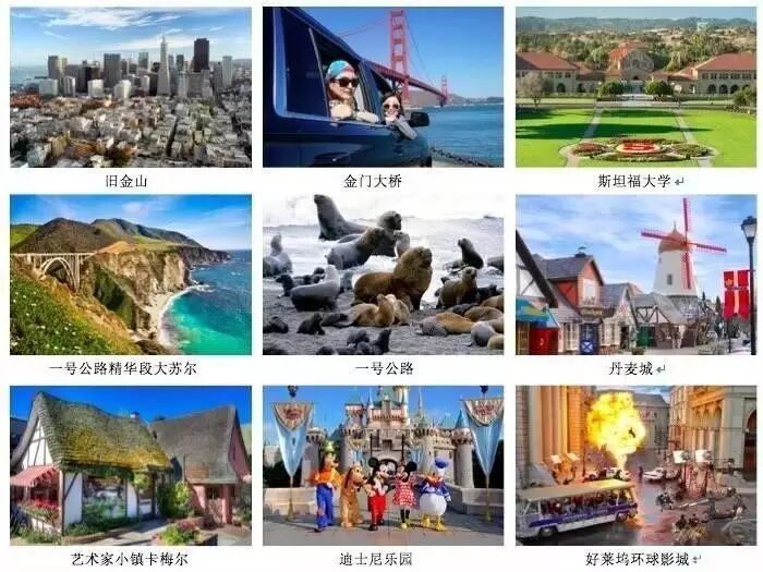 我们在旧金山和打扮成巫婆的街头艺人合影;我们在17英里海岸跟可爱的松鼠和海豹互动;我们在环球影城体验刺激的变形金刚3D过山车;我们在迪士尼乐园high玩儿一整天;我们在斯坦福大学零距离感受名校氛围;我们在鲍威尔湖欣赏美国最美的日落;我们在黄石公园观看令人震撼的彩泉景观……
