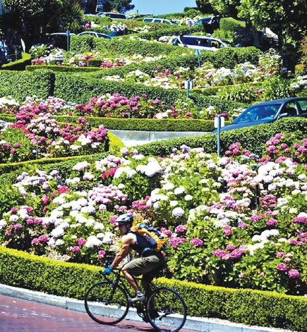 九曲花街因为坡度非常陡,成为美国最弯曲的一条街道。大概一个小时逛完。