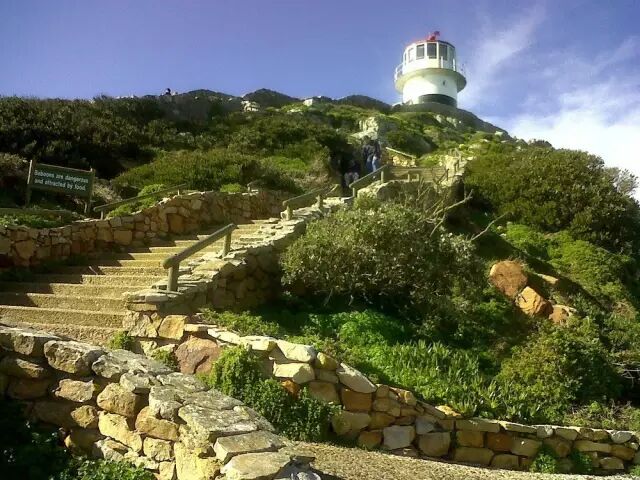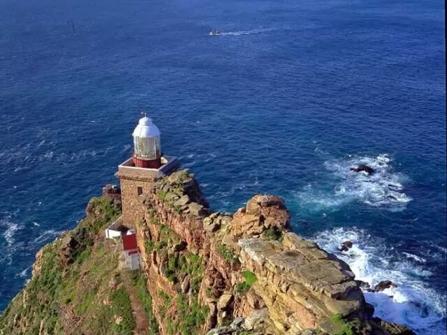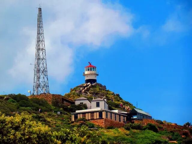 开普角有两座灯塔。竖立在高高的达伽马峰之上的一座灯塔建成于1859 年,现在是开普沿岸所有灯塔的监测站。另一座灯塔海拔较低,建成于1914年,现在已经从第一座灯塔那里接管了相应职能。如今,它依然是南非最强大的灯塔,游客可以通过缆车同时访问两座灯塔,因为缆车把两座灯塔连接起来,这样你就可以不必攀爬那些陡峭的台阶了。
