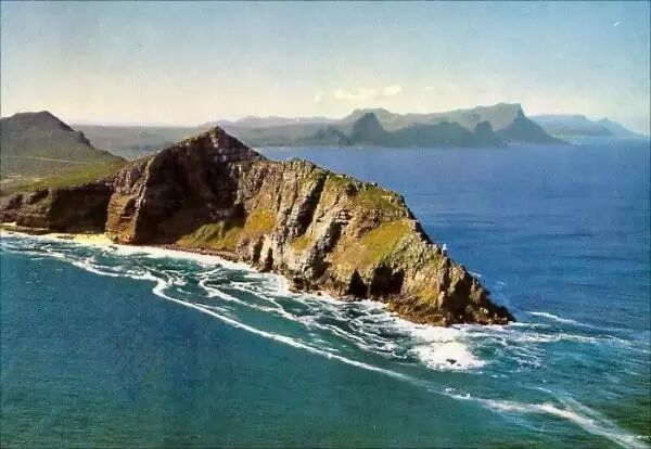 开普角位于好望角以东1.2公里处,两者合在一起共同构成了完整的开普半岛。当葡萄牙探险家迪亚士在1488年航行经过这里时把它命名为“风暴之角”,也因此他成为了第一个驶过非洲大陆最南端的欧洲人。十年后,另一个葡萄牙探险家达伽马跟随他的脚步,经过这里发现了通往印度和远东的航线。