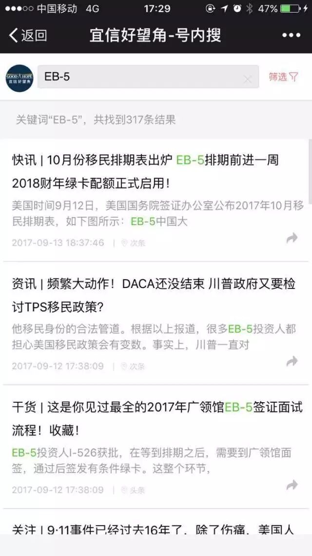 所有曾经发布过的有关EB-5的内容都会呈现。