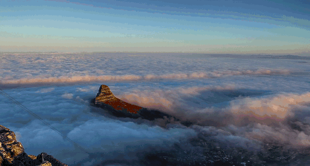 桌山是南非的一座平顶的山,海拔1087米,耸立于高而多岩石的开普半岛北端,坐拥粼粼的大西洋海湾。神奇的桌山山顶像桌面一样平坦,被当地人称为“上帝的餐桌”。