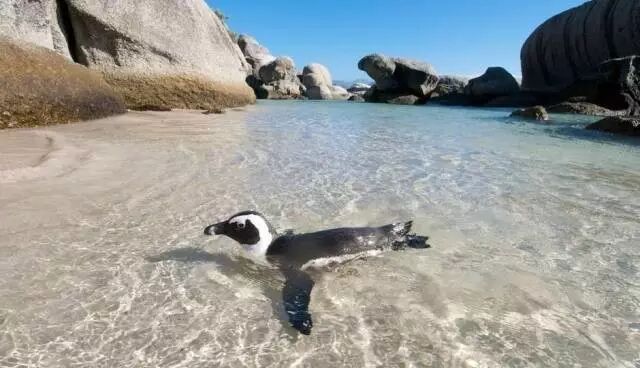 目前这里已经成为了南非企鹅的家园,成群的企鹅在海水中冲浪、戏水、觅食或是在沙滩上享受阳光,已成为游客来到开普敦必游的目的地之一。