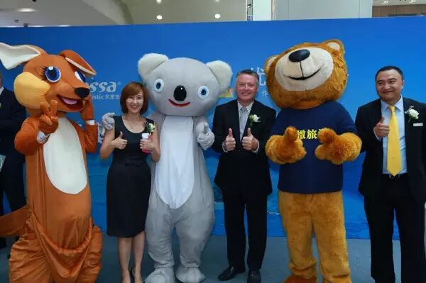 Caissa大熊的到来似乎不输给热辣的泳衣模特,处处受到人们的欢迎。袋鼠和考拉也代表澳大利亚为新门店的开业送上祝福与欢乐,整个庆典现场,男女老少,笑声不断。让我们开启香槟,互送祝福;献上一束鲜花,表达真诚,一份礼物,永留情意。多家媒体记者现场对来自凯撒旅游和澳大利亚凯恩斯景点联盟的高管们做现场专访,不论是记者还是现场观众都是咔擦声连连,采访中,高管们纷纷表达了对门店开业后的期待与展望。Caissa澳洲主题门店的开业,代表着凯撒旅游和澳洲旅游事业及两者的合作又站上了的一个新高度,一个新起点。