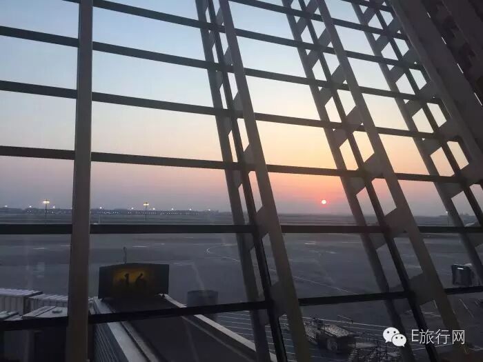 抵达PVG后,走中转通道到T1继续等待晚上的飞机,PVG日落▼