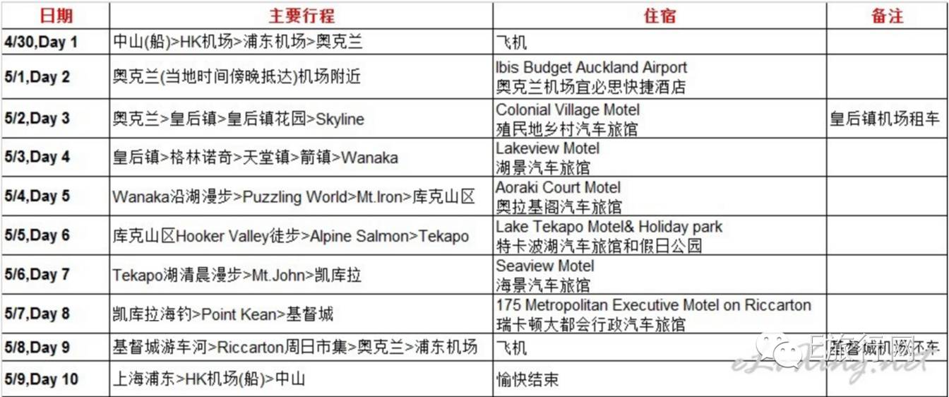 机票是在今年3月中旬定下来的,某天在携程看到东航的香港=-奥克兰(上海浦东中转)价格3.6K/人,对比同期广州、香港出发的直飞、中转的航线,便宜至少一半以上,所以还是匆匆忙地把票定了。虽然价格是可以接受,但是如此中转折腾一番,值不值大家各自衡量吧。也因为这样,建议大家有计划去的提前关注机票,也多关注论坛的机票促销信息,买到性价比更高的票。(最近最心动的价格是南航夏季旅游节的广州直飞往返基督城,含税4.4K/人,11-12月都有票,纽国正值春转夏的季节了吧)