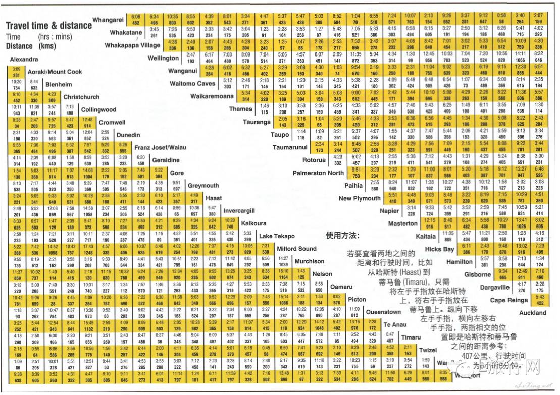 ▼下图是点到点的具体和车程时间参考表(摘自当地获取的旅游咨询),可结合导航一起分析。