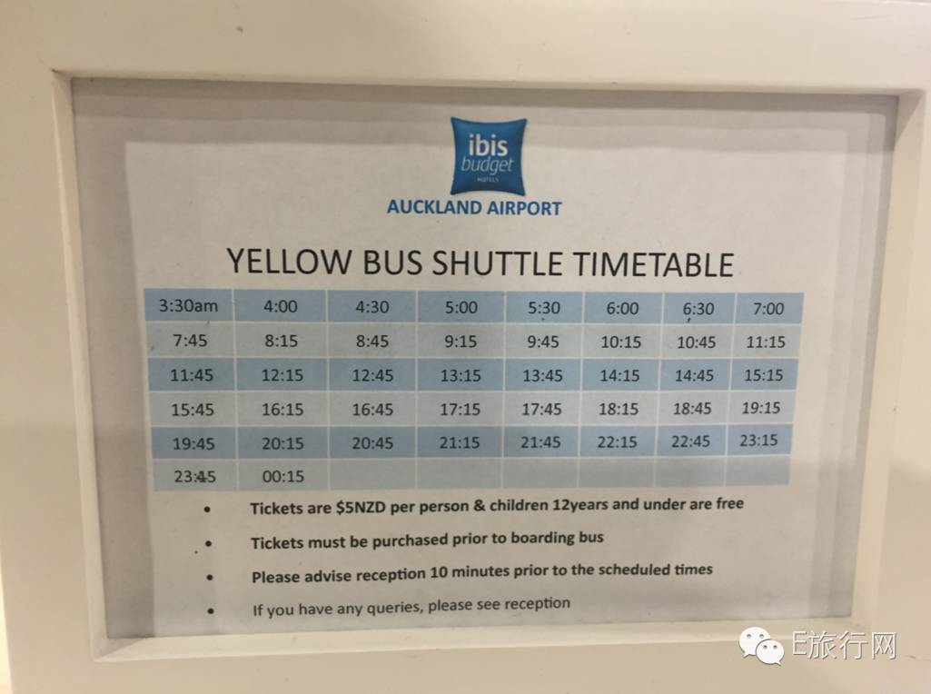 随后步行到Ibis Budget Auckland Airport(奥克兰机场宜必思快捷酒店),之前看评价说距离很近,谁知都走了20多分钟才到,幸好一路上指示都挺清晰的。当然酒店也有提供机场=酒店的穿梭巴服务,$5/人,详见下图。房间好小好小,照片忘记拍了,反正摆下行李箱就没法走动的感觉了,幸好还挺干净。