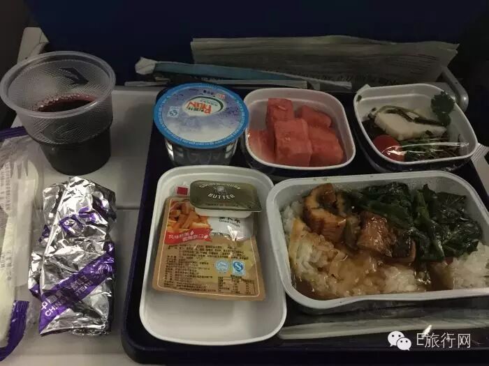 晚上快12点,按时上机,按时起飞,约13个小时的飞行时间,影音娱乐随意看了下觉得屏幕不太舒服,还是睡觉好;机上两顿餐食,中间饮料茶水随意。