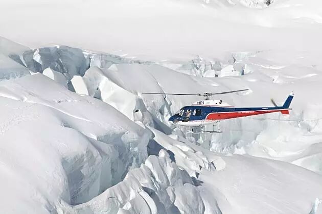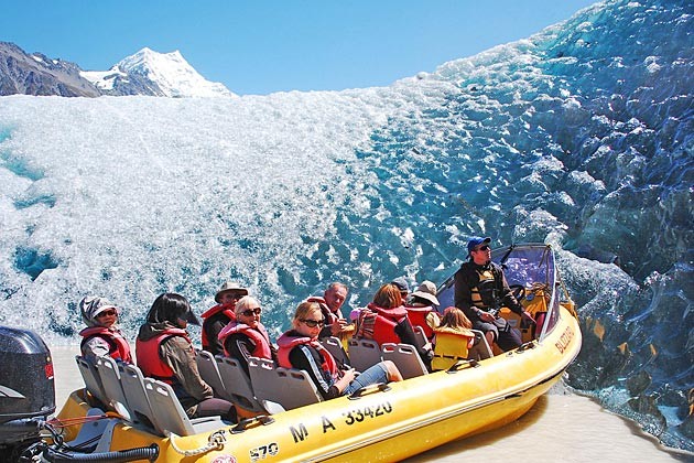 如果天气不错,下午千万不要错过小镇的重量级活动——Air Safaris“大穿越之旅”(Grand Traverse)。飞行用时50分钟,带你俯瞰蒂卡普湖绿松石般的蓝色湖水,穿越著名的弗朗兹约瑟夫冰川(Franz Josef Glacier)、福克斯冰川(Fox Glacier)等等,并绕库克山飞行一周,从另一个角度欣赏雪山湖泊的壮丽美景。
