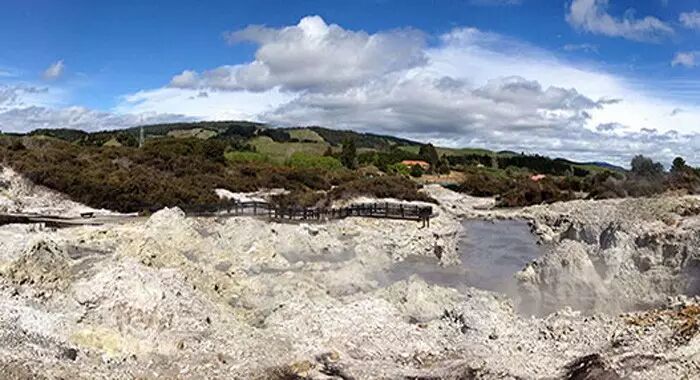 游览【地狱之门地热保护区】,这里是罗托鲁瓦最活跃的地热公园,也是新西兰
