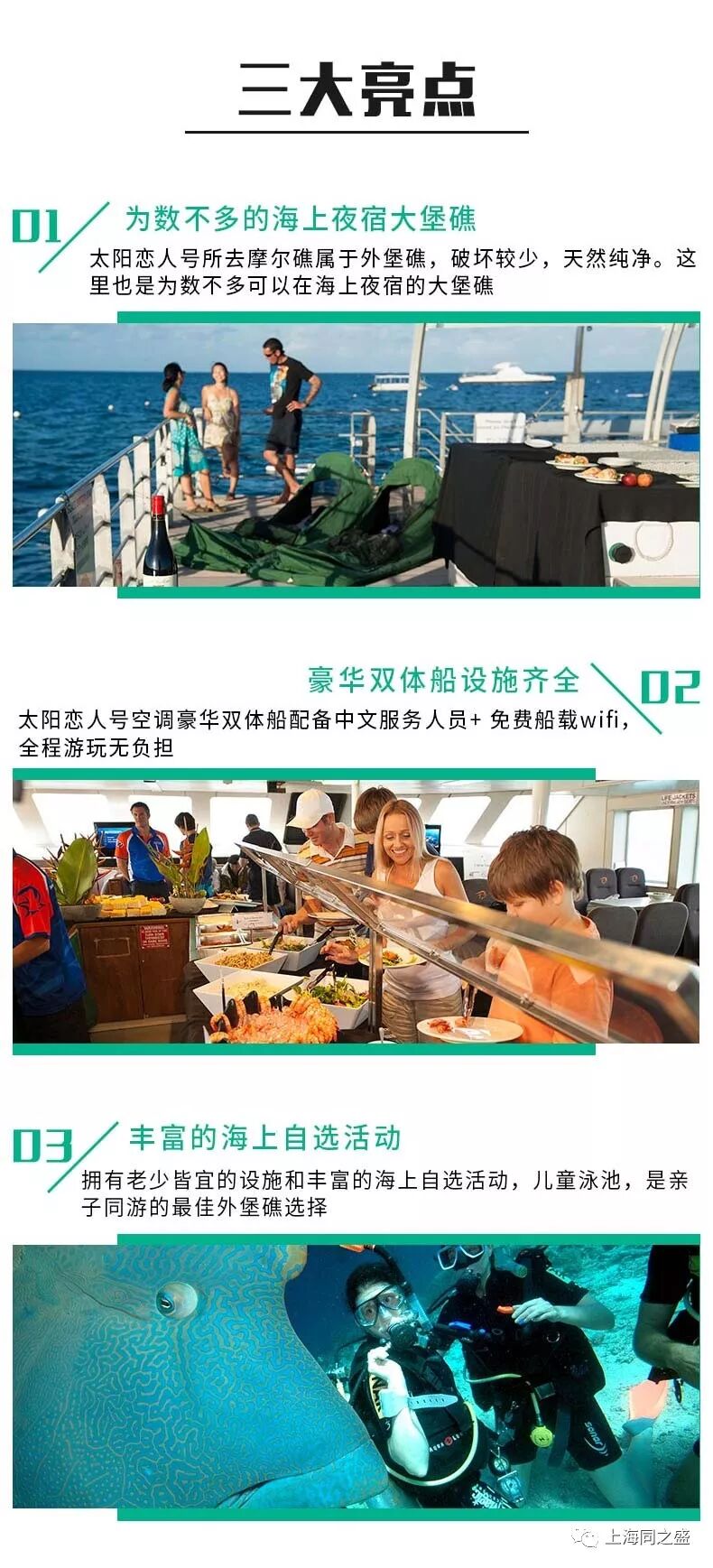 为数不多的海上夜宿大堡礁,豪华双体船设施齐全