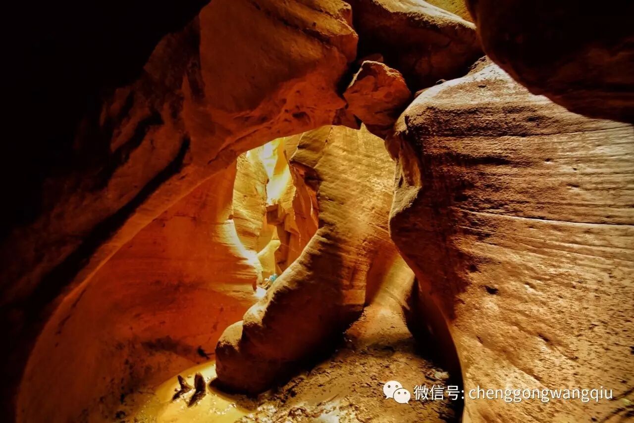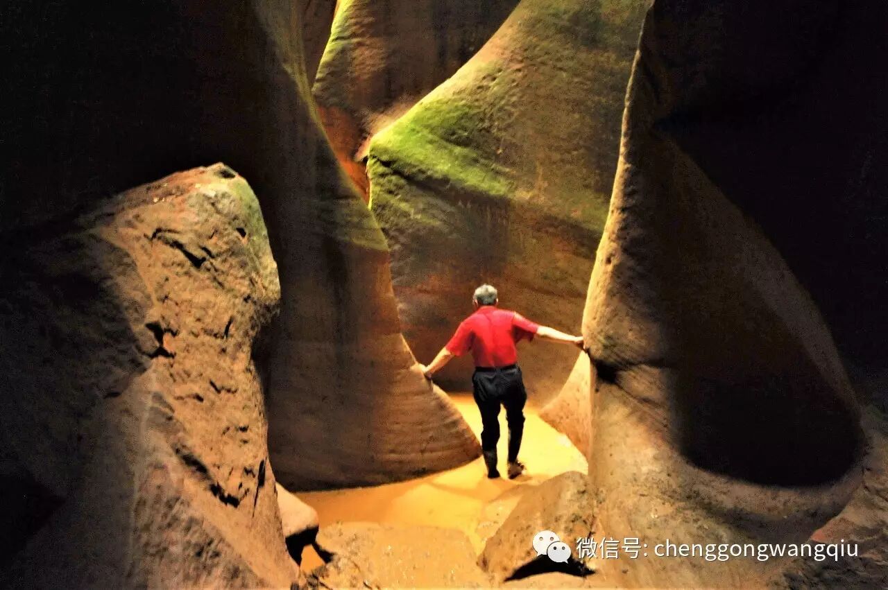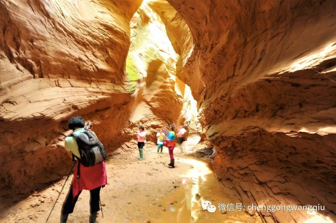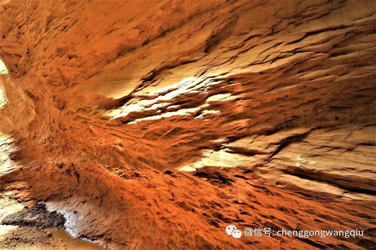 东沟是一线天峡谷,先要淌水过一条小河,而后走过一段长长的水气淋淋景色悠然的峡谷,然后通过一个非常狭窄的入口,穿着高腰雨鞋踏过积水潭,才能进入到这段石头宫殿中。