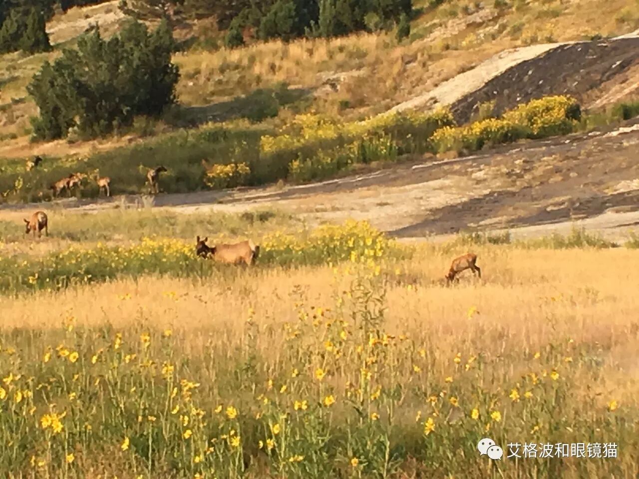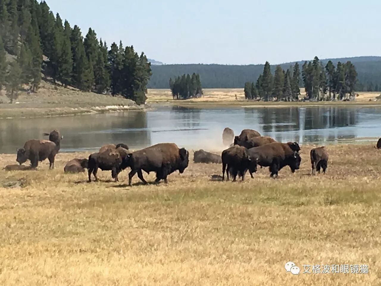 要想在黄石碰到大型动物,一当然要靠运气,二就是靠意识了。前边的车突然减速了,你也别按喇叭;路边的莫名站了一排人,你也减减速;最重要的是看到Ranger拿着望远镜往一个方向瞅,一定要立刻马上迅速路边停下——此时有动物概率大于90%。