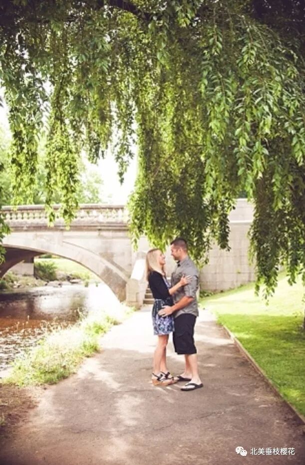 美国的垂枝樱,用作婚庆摄影照片样张,示例如下(作为前景):