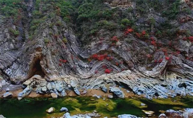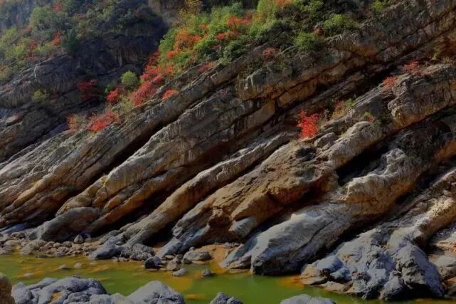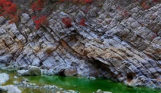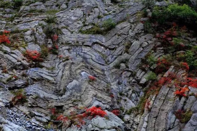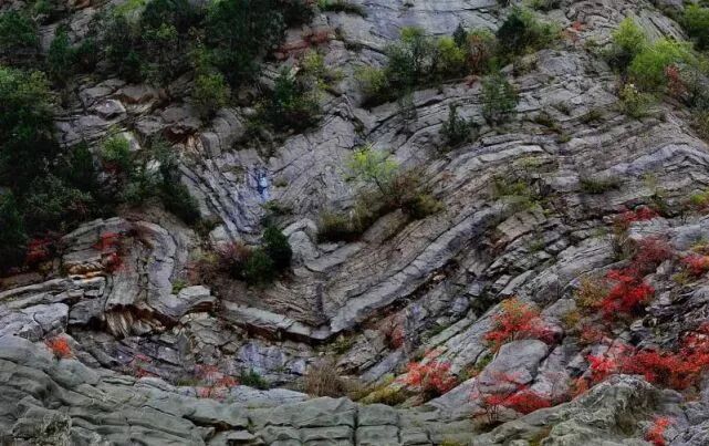 由于受区域构造应力的影响,发育有多组节理、裂隙及小型断层,在流水、重力作用的雕琢下形成以断崖、陡壁、石滩为主的喀斯特地貌和奇特的地质断层、褶皱。
